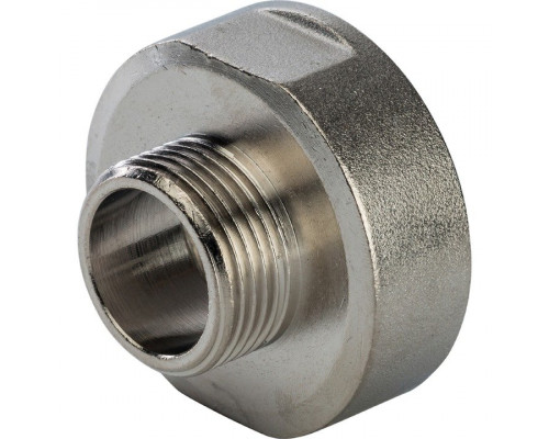 Переходник ВН 1 1/4"x3/4", никелированный, используется для перехода труб с одного диаметра на другой, а так же с внутренней на наружную резьбу в системах водоснабжения и отопления. Материал: латунь с никелированным покрытием.