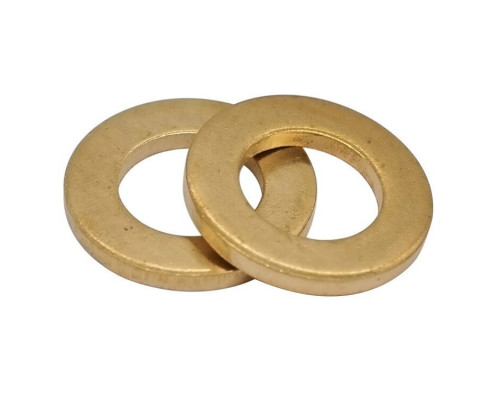 Особенности: Крепеж выполнен в виде плоского круглого латунного кольца с отверстием по центру. Изделие изготавливается с фаской, относится к классу точности А, подкладывается под головку либо гайку другого крепежа для увеличения площади его опорной поверхности и образования прочного резьбового соединения. |