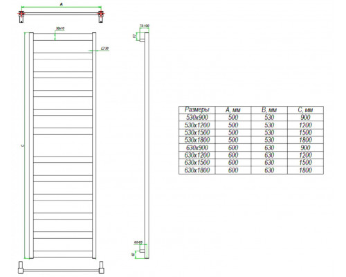 Описание - Водяной полотенцесушитель Grota Brezza 530x900