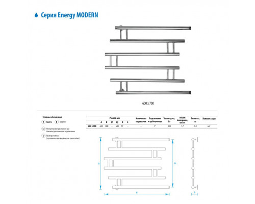 Описание - Водяной полотенцесушитель Energy Modern 600x700 (EWTRMODRN0607000000)