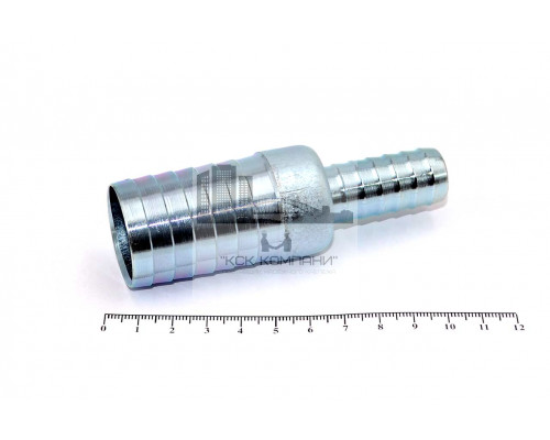 Применение: переходное ремонтное соединение тип «Ёлочка» - штуцер из оцинкованной стали с зубчатой насечкой на обоих концах, используется для наращивания шлангов различных диаметров (при соединении нескольких кусков), либо для быстрого устранения повреждения шланга. Ремонтное соединение тип «Ёлочка» неразъемное (штуцер). Может использоваться для построения длинномерной трубопроводной системы. Для обеспечения надежного и герметичного соединения рукавов рекомендуется использовать силовые одноболтовые или двуболтовые хомуты. Изготовлено из высококачественной стали, защищенной цинковым гальваническим покрытием, что препятствует возникновению коррозии и обеспечивает длительный срок службы изделия.