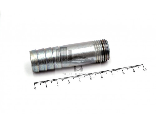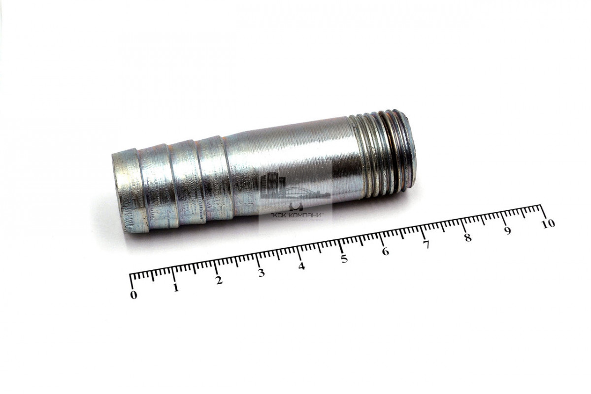 Применение: соединение представляет из себя прямой штуцер цилиндрической формы, с одной стороны наружная резьба, с другой насечка в виде "Елочки" под шланг. Применяется для подключения гибких рукавов к магистральным сетям или технологическому оборудованию. Уникальность данного соединения в одинаковом наружном диаметре резьбы и елочки, а также в отсутствии шестигранника между ними.