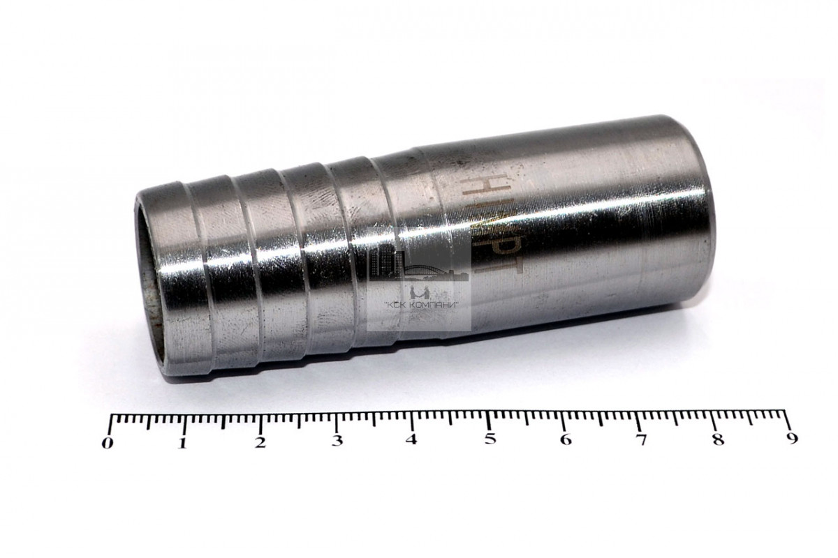 Применение: соединение представляет из себя прямой штуцер цилиндрической формы, с одной стороны с зубчатая насечка, с другой патрубок под приварку. Штуцер изготавливается из черной конструкционной стали. Данный штуцер используется в системах, где для усиления соединения патрубок приваривается, а шланговое соединение фиксируется силовым хомутом.