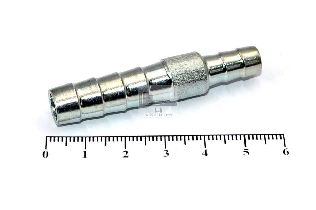 Применение: переходное ремонтное соединение тип «Ёлочка» - штуцер из оцинкованной стали с зубчатой насечкой на обоих концах, используется для наращивания шлангов различных диаметров (при соединении нескольких кусков), либо для быстрого устранения повреждения шланга. Ремонтное соединение тип «Ёлочка» неразъемное (штуцер). Может использоваться для построения длинномерной трубопроводной системы. Для обеспечения надежного и герметичного соединения рукавов рекомендуется использовать силовые одноболтовые или двуболтовые хомуты. Изготовлено из высококачественной стали, защищенной цинковым гальваническим покрытием, что препятствует возникновению коррозии и обеспечивает длительный срок службы изделия.