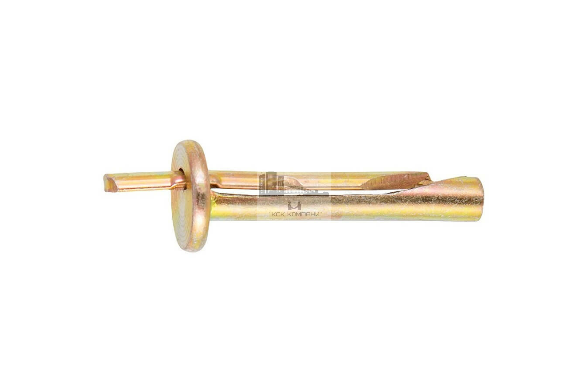 Особенности: Анкер потолочный имеет распорный клин забиваемый с помощью молотка. После установки конструкции повторный монтаж не производится. Монтируемый вровень распорный клин даёт полный распор анкера с минимальным перемещением под нагрузкой. Две опорные зоны (первая - шляпка гвоздя, вторая - распорный клин) обеспечивают точный монтаж особенно в узких просверленных углублениях и большой показатель надёжности при эксплуатации. |