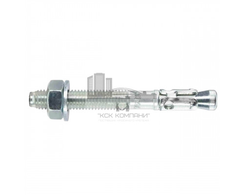 Особенности: Крепежное изделие изготовлено из стали с защитным цинковым покрытием, предотвращающим появление коррозии. Конструктивно крепеж состоит из подвижной втулки распорного элемента, конического клина с верхней частью в виде шпильки, на которую надета шайба и накручена шестигранная гайка. При монтаже конус распирает втулку крепежа и приводит к его фиксации в несущем основании. |