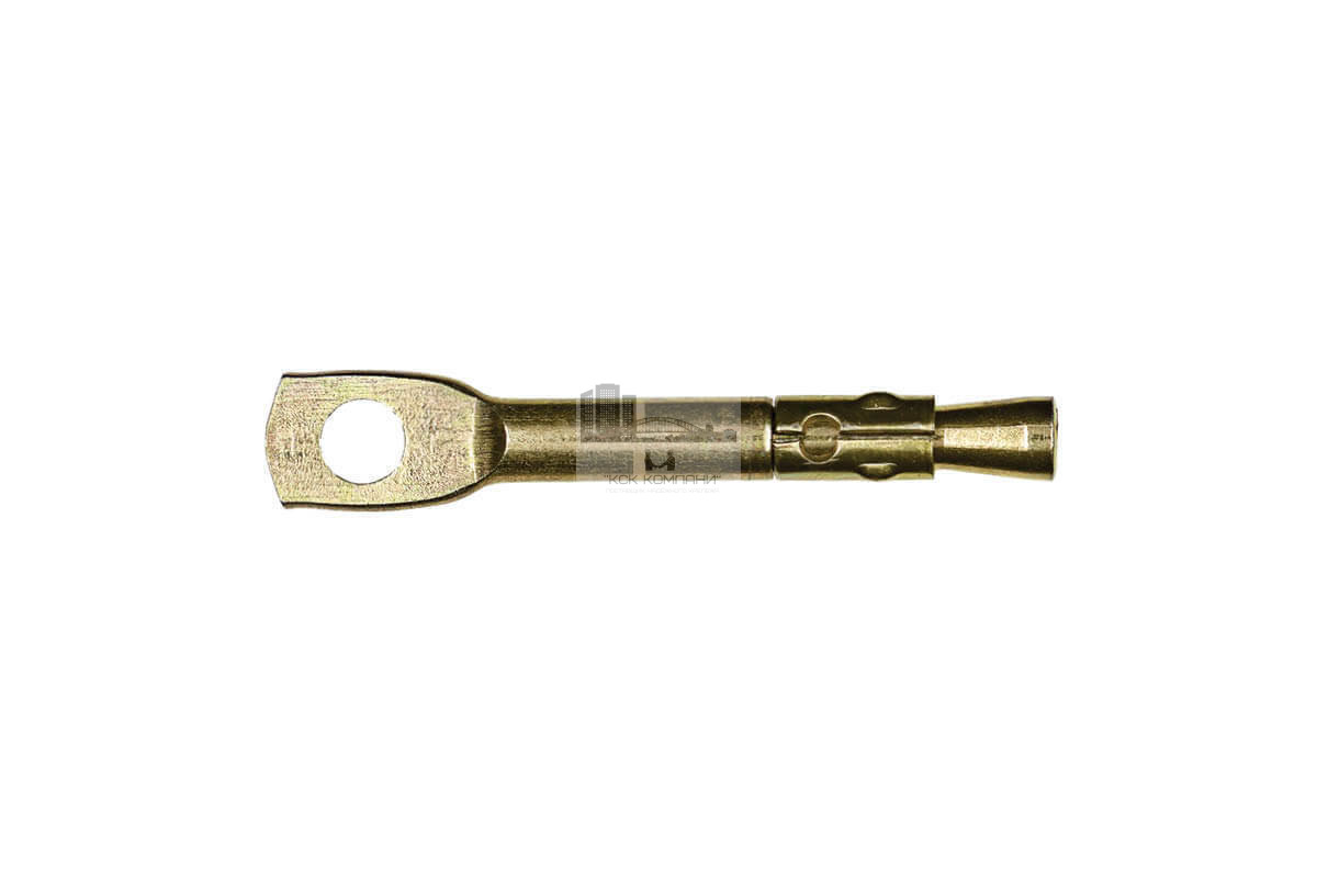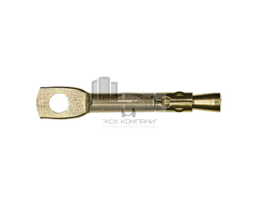 Особенности: Представляет собой гладкий стержень с ушком, изготовленный из стального сплава, покрыт жёлтым цинком для защиты от коррозии и увеличения срока службы. С одной стороны анкера расположено ушко для фиксации потолочных конструкции, с другой ассиметричные зубья для более прочной сцепки с материалом основания. Монтируется в подготовленное отверствие, с усилием тянется вниз, при нагрузке распорный элемент раскрывается и надёжно фиксируется. |