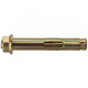 Особенности: Крепеж представляет собой пустотелую гильзу, в которую вставлена резьбовая шпилька и конусообразная распорная часть. На резьбовой конец шпильки установлена шайба и накручена шестигранная гайка. Изделие устанавливается в заранее высверленное отверстие при завинчивании гайки конусная часть входит во втулку, разжимает ее и фиксирует крепеж со стенками несущего материала. |