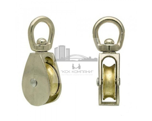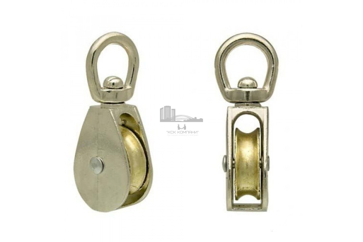Особенности: Изделие состоит из круглого кольца, ролика и вертлюга. Ролик выполнен со специальной канавкой под трос или канат, что способствует надежной фиксации и исключает возможность соскальзывания. Кольцо применяется для закрепления одинарного блока. Вертлюг позволяет изменять направление движения троса или каната. |