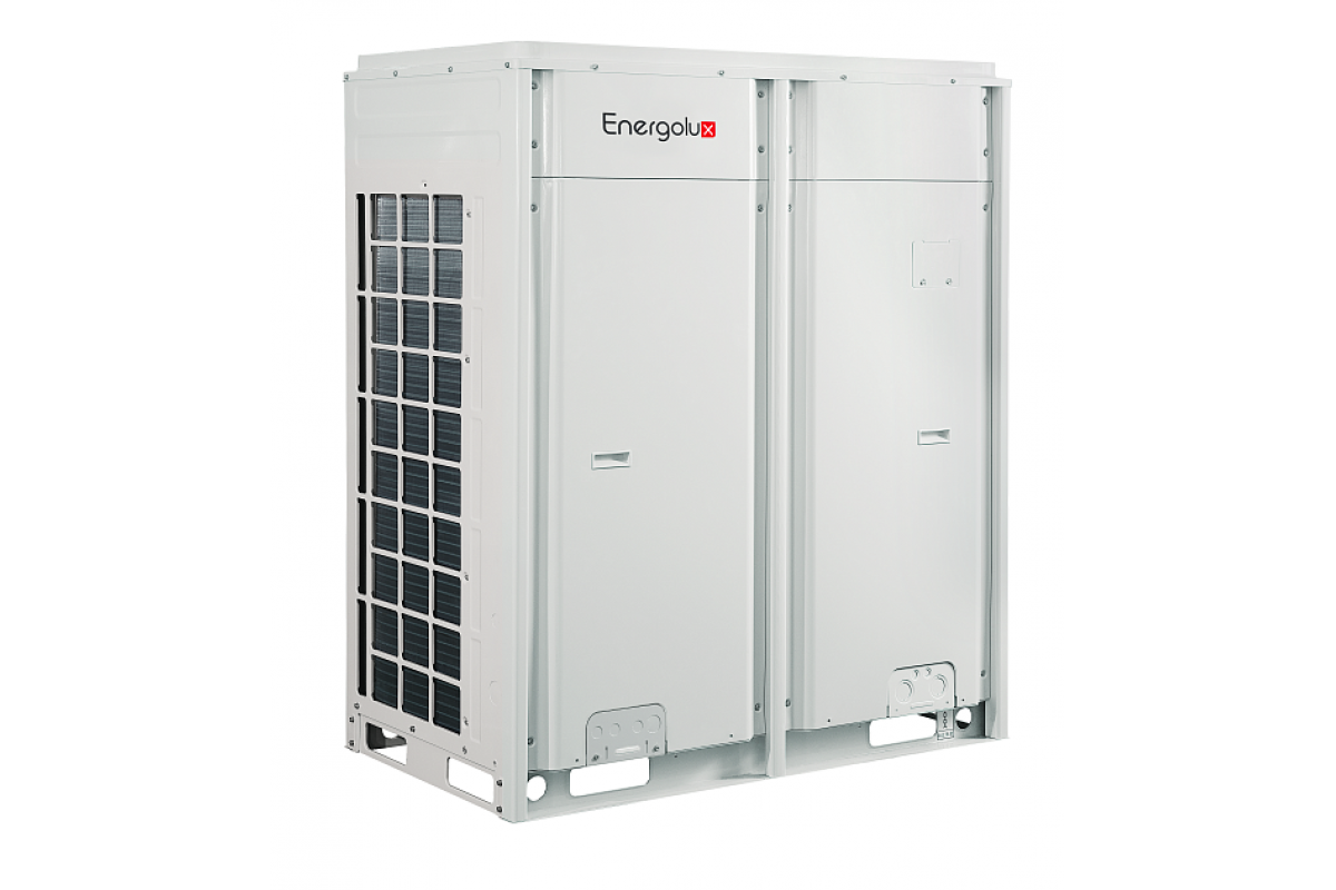 Могут объединяться в единую модульную систему из 4-х наружных блоков создавая систему холодопроизводительностью до 180 кВт.
