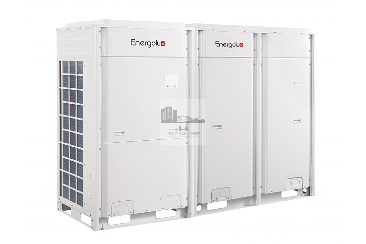 Могут объединяться в единую модульную систему из 4-х наружных блоков создавая систему холодопроизводительностью до 180 кВт.