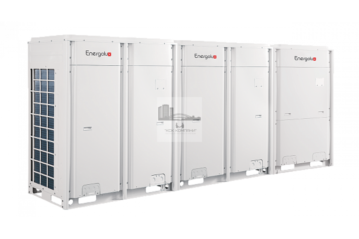 Могут объединяться в единую модульную систему из 4-х наружных блоков создавая систему холодопроизводительностью до 180 кВт.