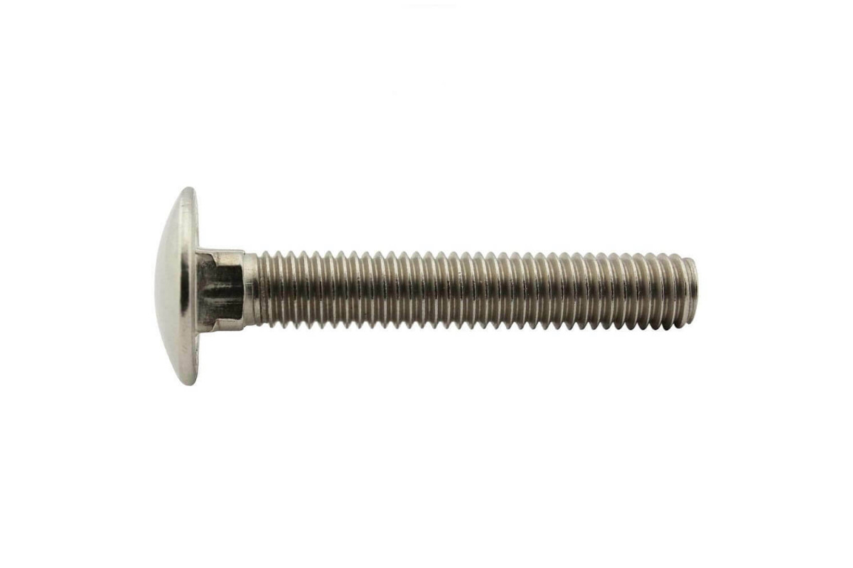 Применение: Крепеж выполнен в виде стержня с полной резьбой и полукруглой головкой, которая утапливается в потайной фаске монтажного отверстия и делает узел крепления практически незаметным. Изделие имеет квадратный подголовник, он во время установки фиксируется в материале и предотвращает прокручивание крепежа при затяжке. |