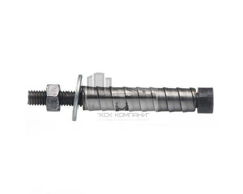 Особенности: Крепеж выполнен из стали с защитным оксидированным покрытием. Имеет вид стержня с резьбовой частью, на которую надета шайба и накручена шестигранная гайка. На остальную длину изделия накручен расклинивающий спиралевидный элемент. Монтаж крепежа осуществляется в заранее высверленное отверстие. Во время затяжки гайки витки расклинивающего элемента сжимаются и фиксируются со стенками несущего основания. |