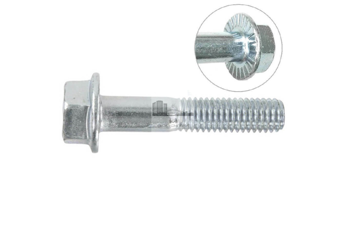 Особенности: Крепеж имеет высший класс прочности - 10.9, за счет закаливания. Болт не деформируется при мощных нагрузках, представлен в виде шпильки и шестигранной головки с фланцем. Болт с фланцем используют для прочного резьбового соединения с гайкой, но без использования шайбы. Частая резьба повышает устойчивость, предотвращает раскручивание под действием вибрации. Безрезьбовой участок на стержне болта повышает устойчивость к поперечной нагрузке. Плоский фланец равномерно распределяет нагрузку на присоединяемый материал и предотвращает его искривление во время монтажа. |