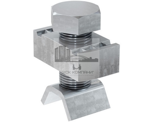 Особенности: Соединительный крепеж состоит из нескольких деталей. Это болт с полной резьбой М12, шестигранной головкой с размером “под ключ” SW19 и приваренным в нижней части цилиндрического стержня отрезком профиля трапецеидального сечения. Размер раскрытой части этого элемента равен 18 мм. Кроме этого, на резьбу болта завинчена прямоугольная гайка с размерами 12x19x34 мм. Два диагонально расположенных угла этого крепежа срезаны. Для облегчения установки внутрь шины. На верхней поверхности гайки в параллель с ее короткими сторонами прорезаны два паза с острыми гребнями в них. В этих прорезях при закручивании болта прочно удерживаются торцевые кромки профиля. |