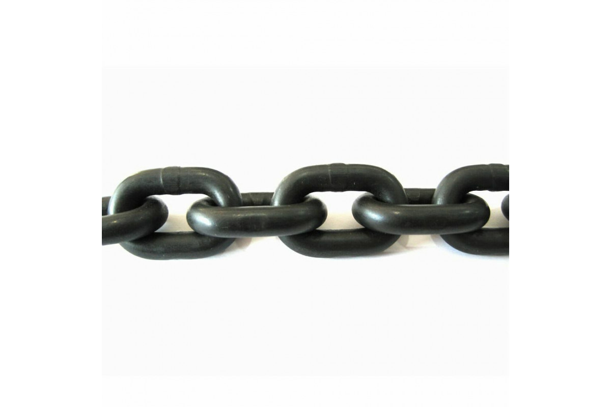 Особенности: Цепь выполнена из особо прочного сплава стали. Состоит из овальных колец соединенных между собой. Класс прочности данной цепи 8 или G80. |
