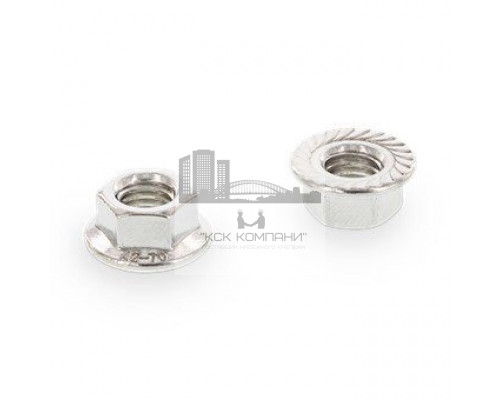 | Применение: Чтобы ускорить сборку резьбовых соединений, увеличить их надежность и исключить возможность самопроизвольного отворачивания под нагрузкой, применяют шестигранные гайки с фланцем. Они широко распространены в машиностроении и строительстве. Конструктивно такие гайки сделаны заодно с плоским фланцем, диаметр которого больше размера под ключ. Гайки с фланцем производятся из нержавеющих сталей, содержащих никель, молибден и хром. Это делает их немагнитными, прочными и экологически безвредными. Крепеж востребован в фармацевтической и пищевой промышленности. |