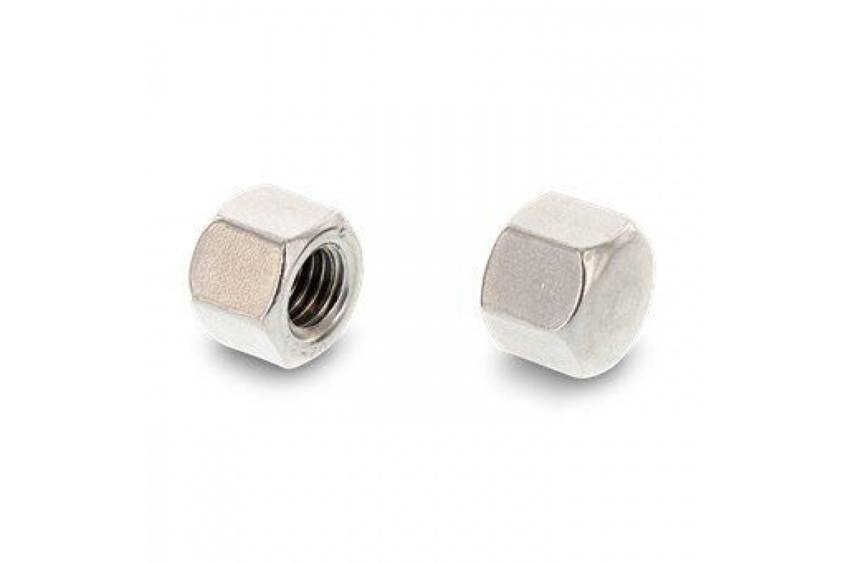 Гайка нержавеющая колпачковая шестигранная является аналогом европейского стандарта DIN 917. Возможно изготовление из нержавеющей стали А1, А2 и А4, латуни. Возможно производство с покрытием цинк, никель или хром, либо поставляется без покрытия. Производится размерами от М4 до М36. Относится к классу прочности 6.