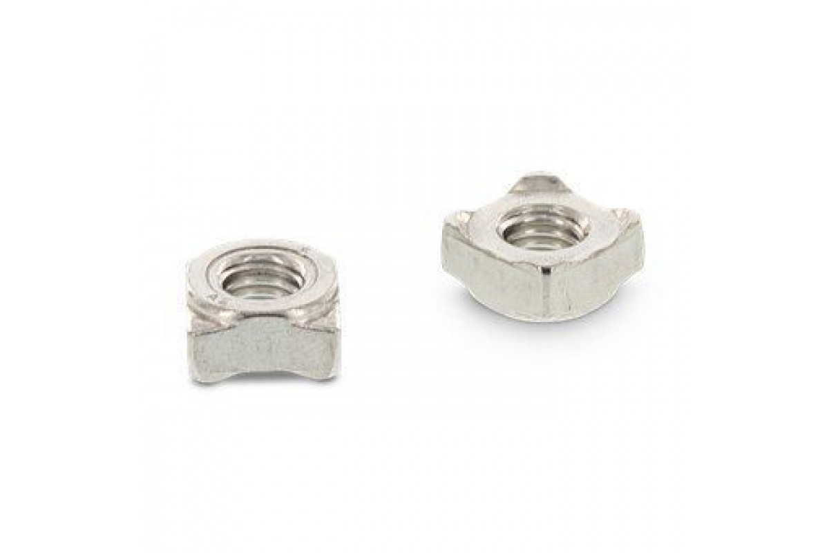 Гайка приварная применяется в соединениях деталей с тонким основанием, в которых нет невозможности нарезать метрическую резьбу. Выступающие кончики метиза во время сварки расплавляются, образуя неразъемное соединение с основанием. Гайка - является аналогом европейского стандарта DIN 928. В основном изготавливается из нержавеющей стали А2 и А4. Может производиться из различных марок стали, все зависит от места применения и назначения изделия. Сталь, из которой планируется изготовление гайки, не должна содержать кремний более 0,25%. Увеличение, в процентном соотношении кремния в стали, приводит к изменениям структуры металла, что негативно сказывается на качестве продукции. Производится размерами от М4 до М12.