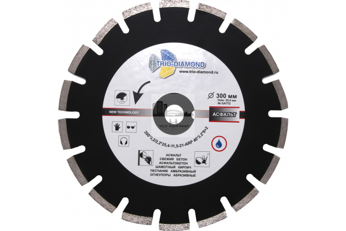 Особенности: специализированный диск, с защитным зубом и увеличенной ресурсоемкостью, используются с применением воды.