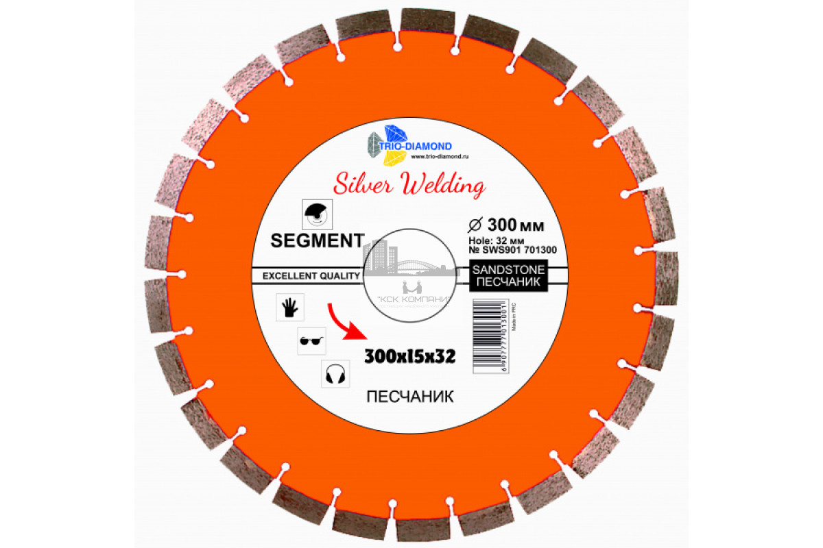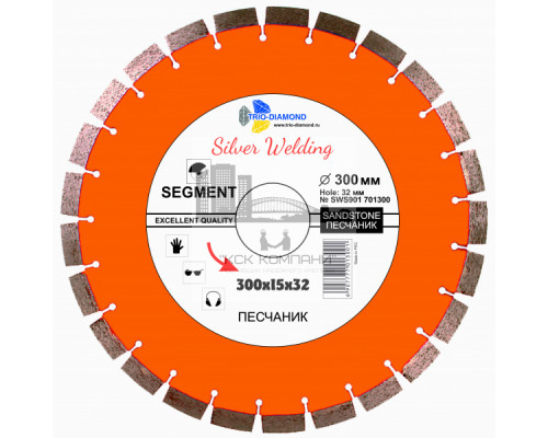 Диск алмазный отрезной 300*32*15 Сегмент Песчаник Серебряная пайка (1 шт.)
