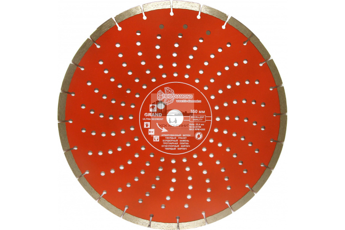 Назначение: для резки высоко и среднеабразивных материалов: армированного бетона, железобетона, бетона, огнеупоров, кирпича, тротуарной плитки, бордюрного камня, гранита, мрамора.