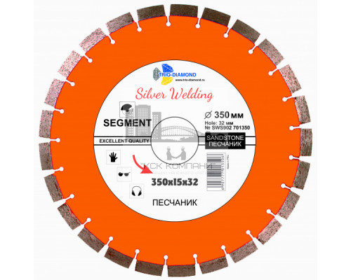 Диск алмазный отрезной 350*32*15 Сегмент Песчаник Серебряная пайка (1 шт.)