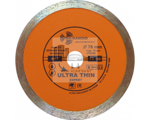 Диск алмазный отрезной 76*10 мм Сплошной ультратонкий Эксперт hot press (1 шт.)