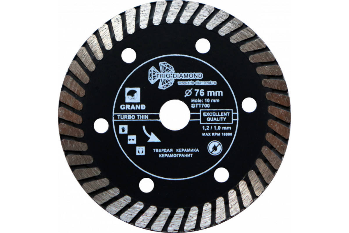 Диск алмазный отрезной 76*10 мм Турбо ультратонкий серия Grand hot press (1 шт.)