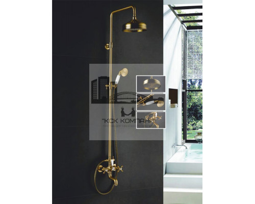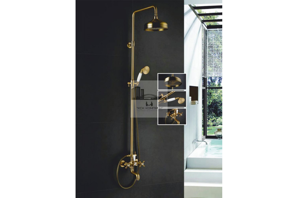 Оснащение: Термостат,душевая лейка,верхний душ, шланг для душа,с держателем душ, с изливом (излив для ванны).