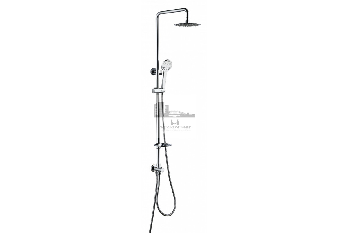 Оснащение: душевая лейка, верхний душ, шланг для душа, с держателем душа, мыльница, (без излива).