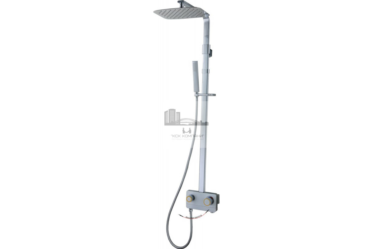 Оснащение: душевая лейка, верхний душ, шланг для душа, с держателем душа, (без излива).