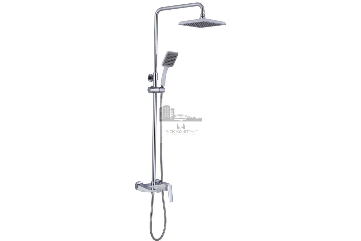 Оснащение: душевая лейка, верхний душ, шланг для душа, с держателем душа, (с изливом).