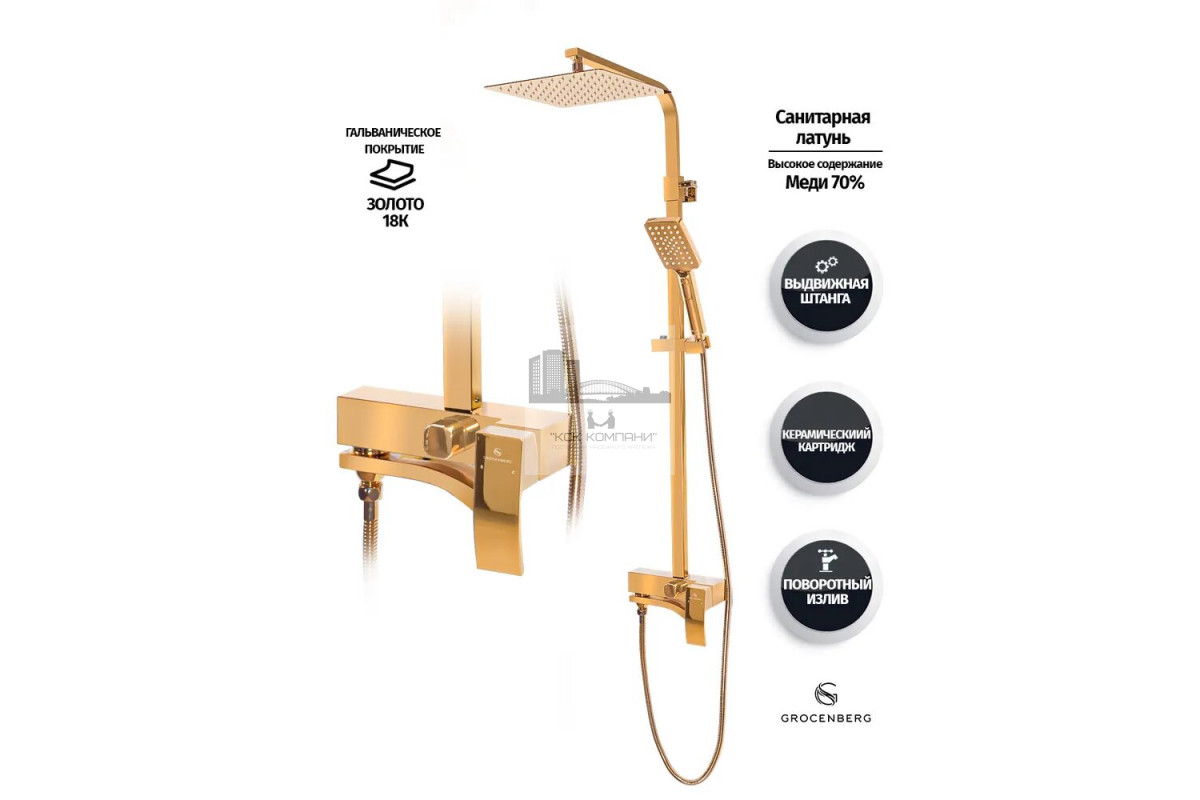 Описание - Душевая система Grocenberg GB7007-1, золото