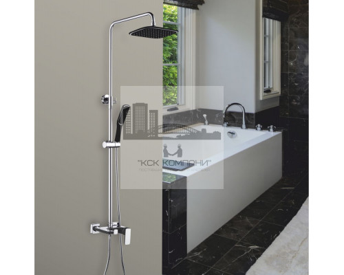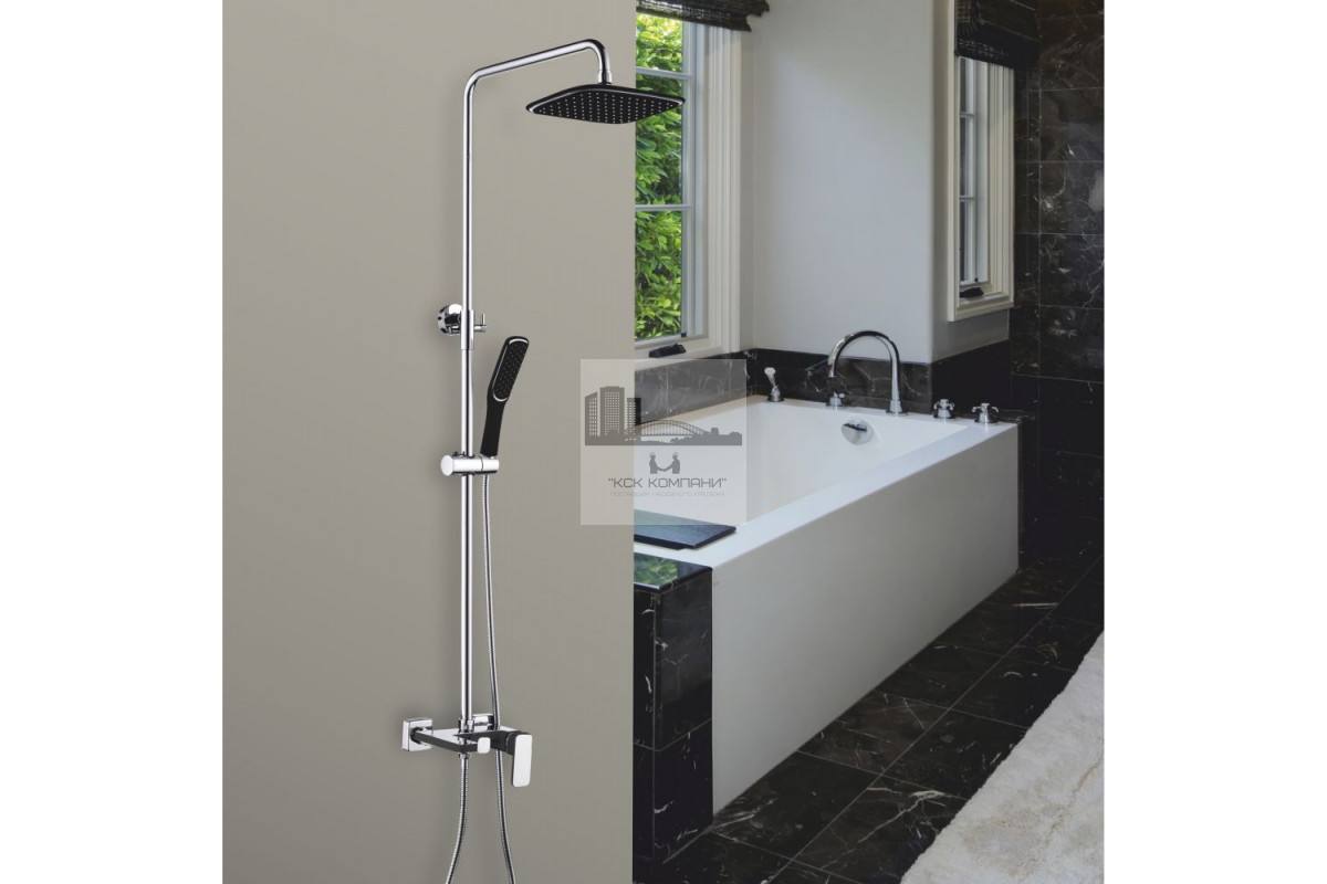 Оснащение: душевая лейка, верхний душ, шланг для душа, с держателем душа, (с изливом).