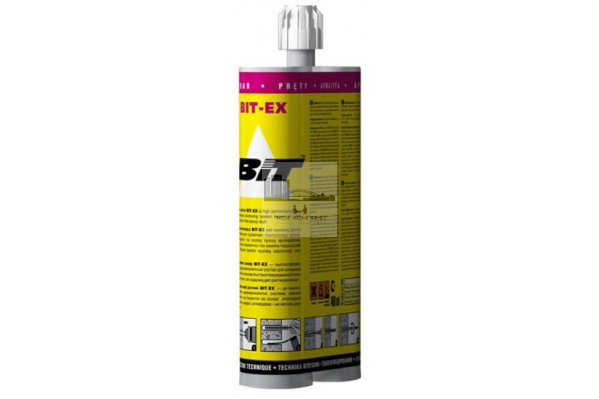 Для монтажа закладных элементов больших габаритов используется BIT EX. Соединение полученное при использовании данного химического состава характеризуется высокой грузоподъёмностью. Химический анкер BIT EX рекомендован для применения в гнёздах, произведённых алмазным буром с гладкой поверхностью внутри.