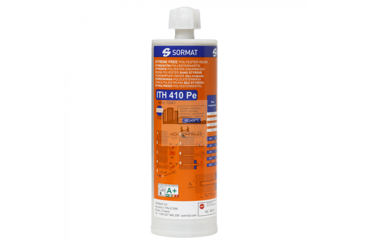 Химический анкер SORMAT ITH 410 Pe полиэстер может использоваться для отверстий с влагой, однако в этом случае скорость отвердения удваивается. Состав выполнен на основе полиэстера, не содержит летучих веществ, которые вызывают специфический запах. Используется для деформированных зон бетона, глиняного, полнотелого кирпича, натурального камня.