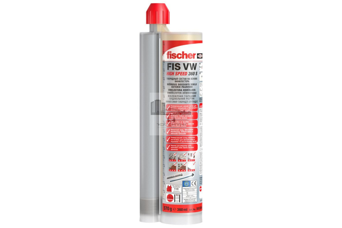 Инъекционный состав FISCHER FIS VW 360 безопасен в эксплуатации, что подтверждается наличием сертификата ETA. В продукте не используется стирол, это позволяет проводить работы в закрытых помещениях. FISCHER FIS VW 360 мл оборудован картриджем, при помощи которого удается выполнить точную инъекцию, а также обеспечивается многоразовость применения (достаточно сменить насадку).