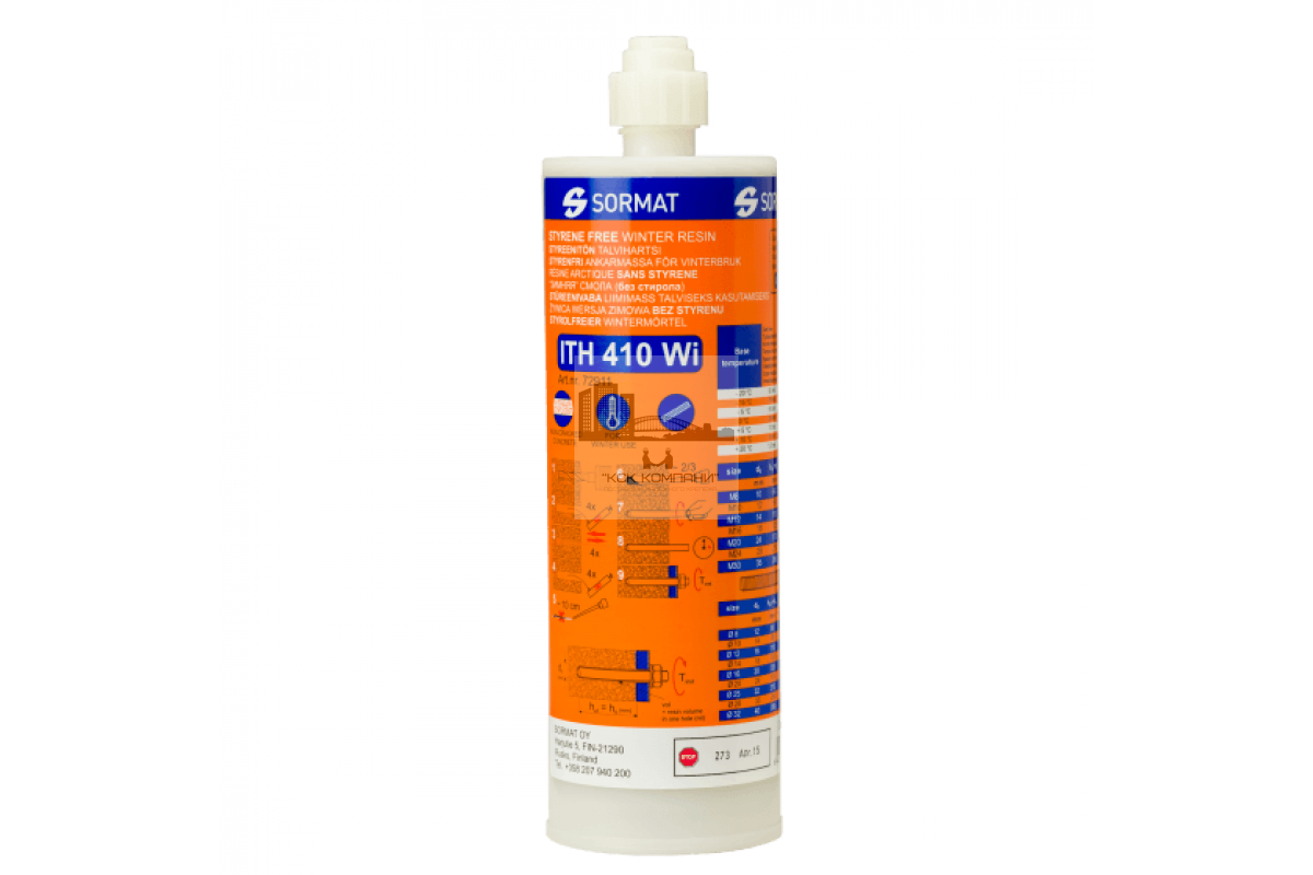 Для фиксации различных элементов конструкций в зимний период используется химический анкер SORMAT ITH 410 Wi. Двухкомпонентный состав не содержит стирола и других летучих веществ, это обеспечивает экологичность и высокую скорость затвердения. Монтаж анкера химического SORMAT ITH Wi осуществляется в заранее подготовленное гнездо при помощи сменных смесителей.