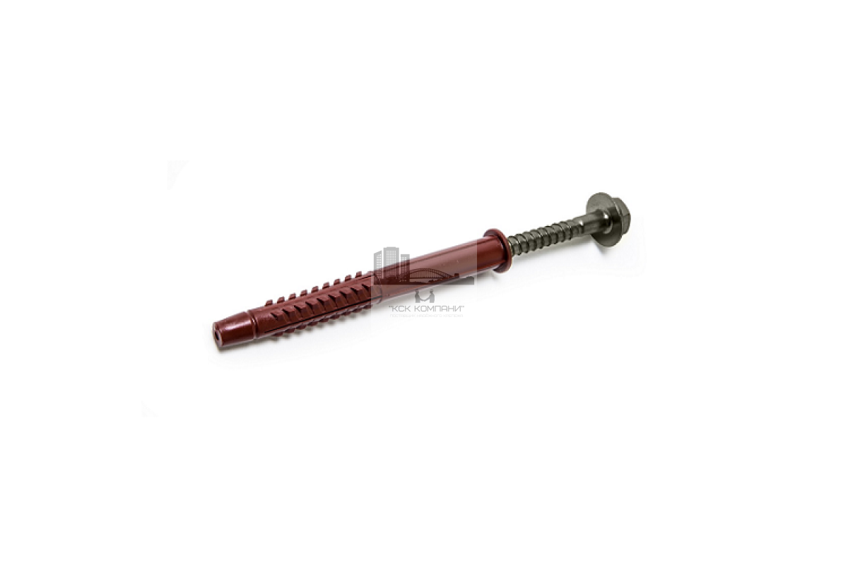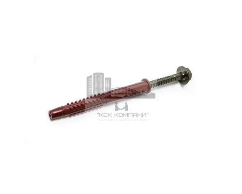 Фасадный полимерный дюбель с четырехзонной распорной частью 4BSK-L в комплектации с горячеоцинкованым шурупом для надежного крепления фасада.