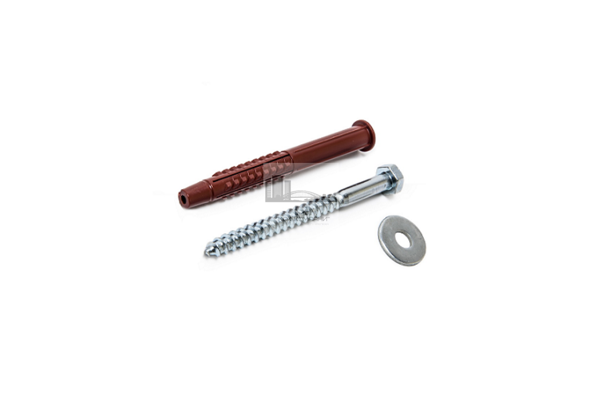 Фасадный полимерный дюбель с четырехзонной распорной частью 4BSK-L в комплектации шурупа DIN 571 и широкой усиленной шайбы.