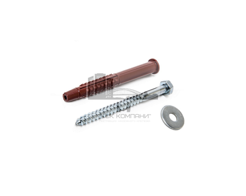 Дюбель состоит из цилиндра из полиамида с четырехзонной распорной частью повышенной прочности, в котором размещается шуруп DIN 571 с шестигранной головкой и широкая усиленная шайба.