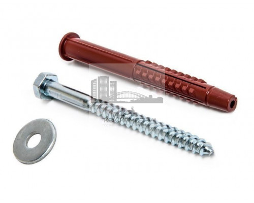 Особенности: Изделие состоит из полиамидной втулки с бортиком и распорными элементами, а также оцинкованного шурупа с неполной резьбой и шестигранной головкой. В комплект входит круглая плоская шайба. Шуруп имеет класс прочности 4.6-5.8. Геометрия составляющих комплекта идеально подобрана, позволяет быстро выполнять монтаж. |