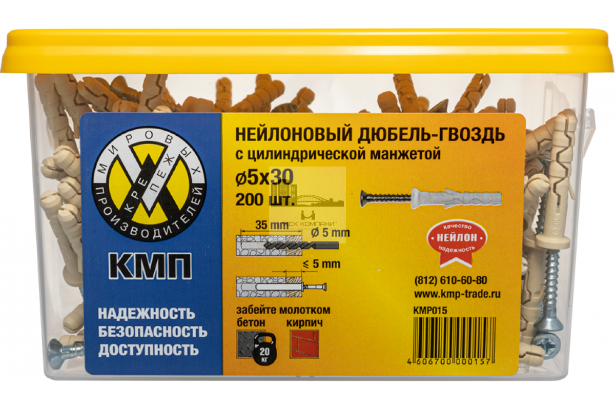 Дюбель-гвоздь КМП с цил.манжетой 5x30 (200шт)