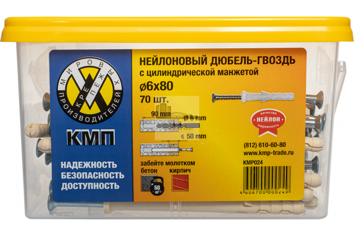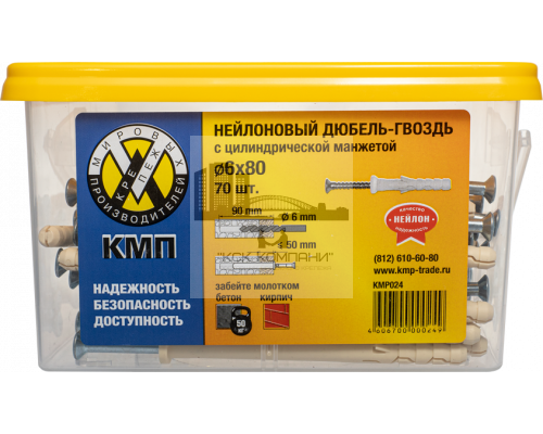 Дюбель-гвоздь КМП с цил.манжетой 6x80 (70шт)