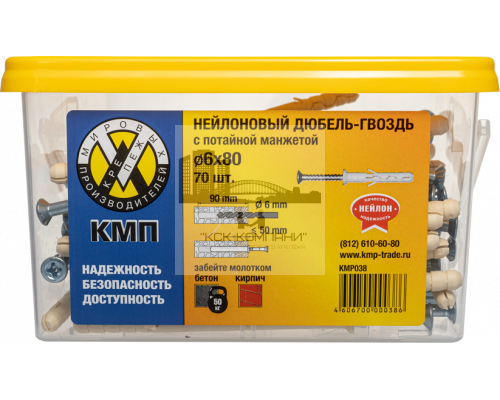 Дюбель-гвоздь КМП с потайной манжетой 6x80 (70шт)