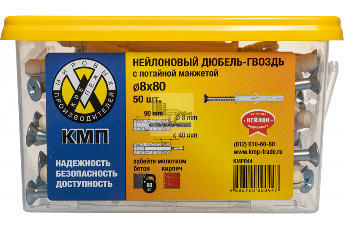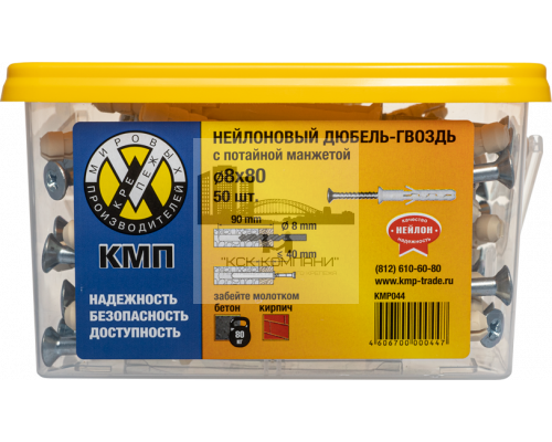 Дюбель-гвоздь КМП с потайной манжетой 8x 80 (50шт)