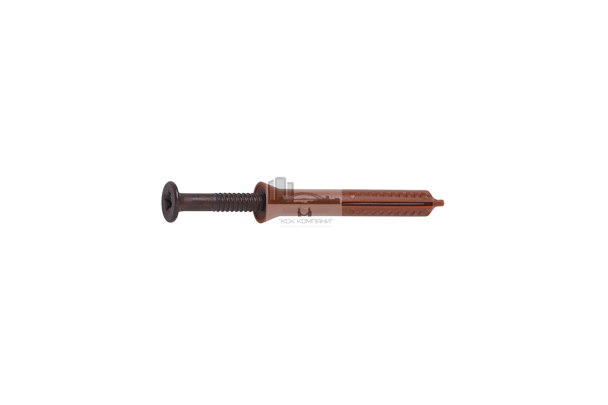 - Готовый к монтажу нейлоновый дюбель для сквозной установки забиванием.