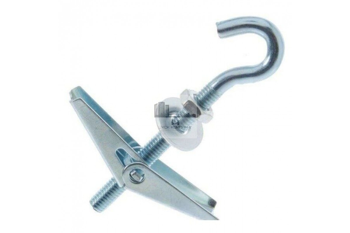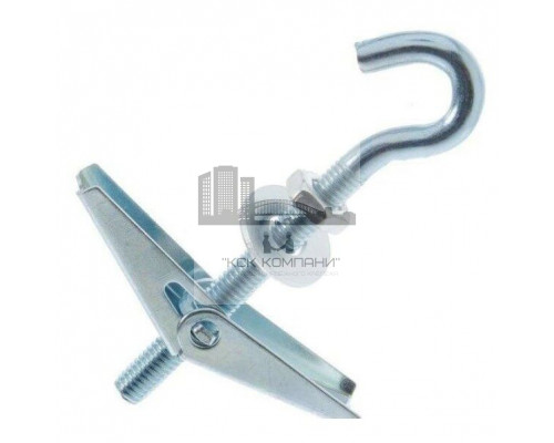Дюбель складной пружинный с крюком используется в строительстве для крепления подвесных конструкций к пустотелым и деревянным материалам.